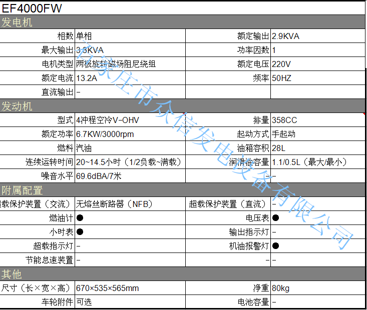 YAMAHA雅马哈EF4000FW发电机组